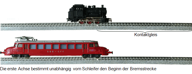 in diesem Falle Kontaktgleise für den Bremsabschnitt und den